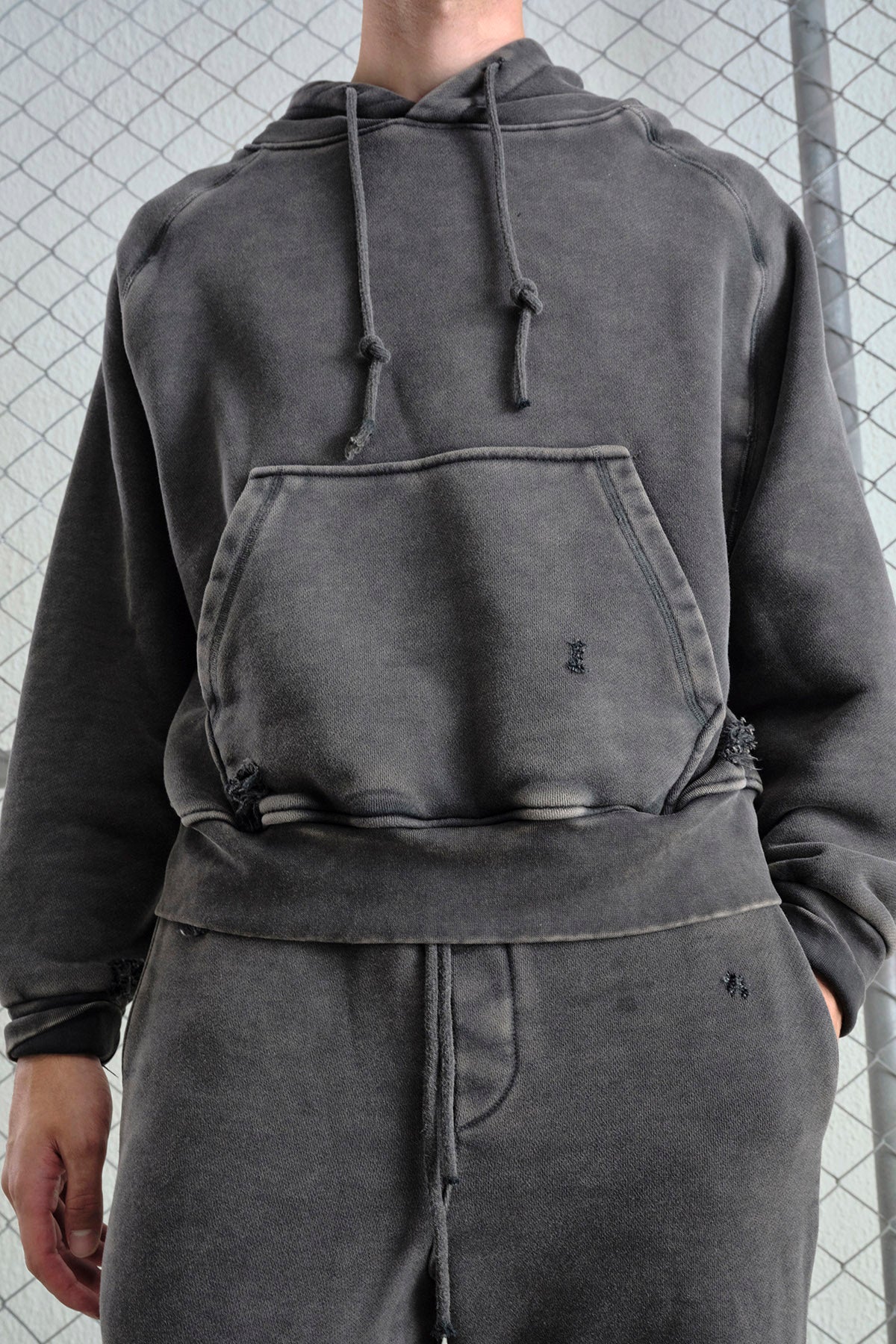 Oversized hooded sweatshirt with a washed effect, distressed details, and a front pocket. The oversized fit delivers a modern silhouette, while the washed finish gives it a contemporary look. Distressed details enhance the design and add a bold streetwear attitude. Made from cotton fabric, it offers a soft feel, warmth, and comfortable wear. The front pocket adds functionality, making this sweatshirt a key piece for casual outfits that combine comfort and style.